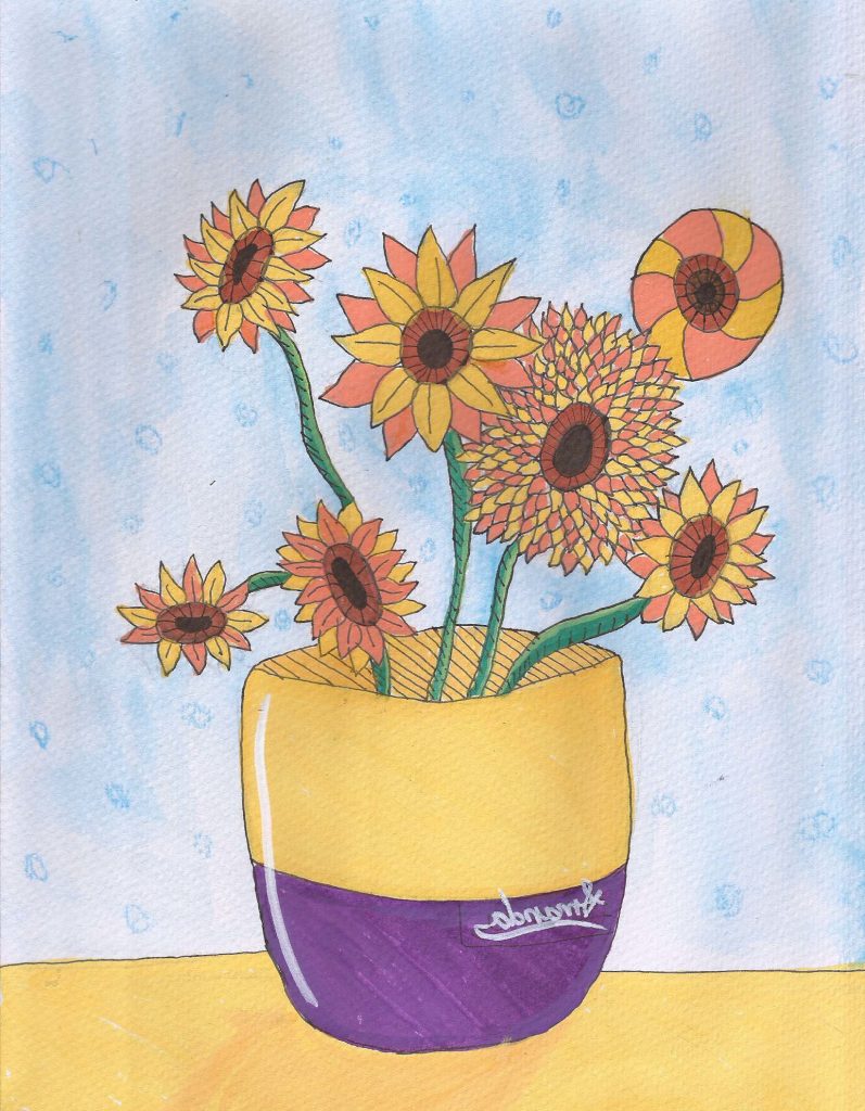 Dibujo inspirado en la serie Los girasoles, de Vincent van Gogh.
